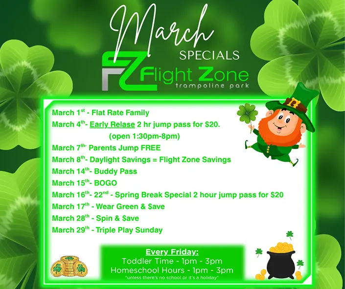 Flight Zone is the place to go for tons of fun at a great price! We also have specials that you won’t want to miss out on!